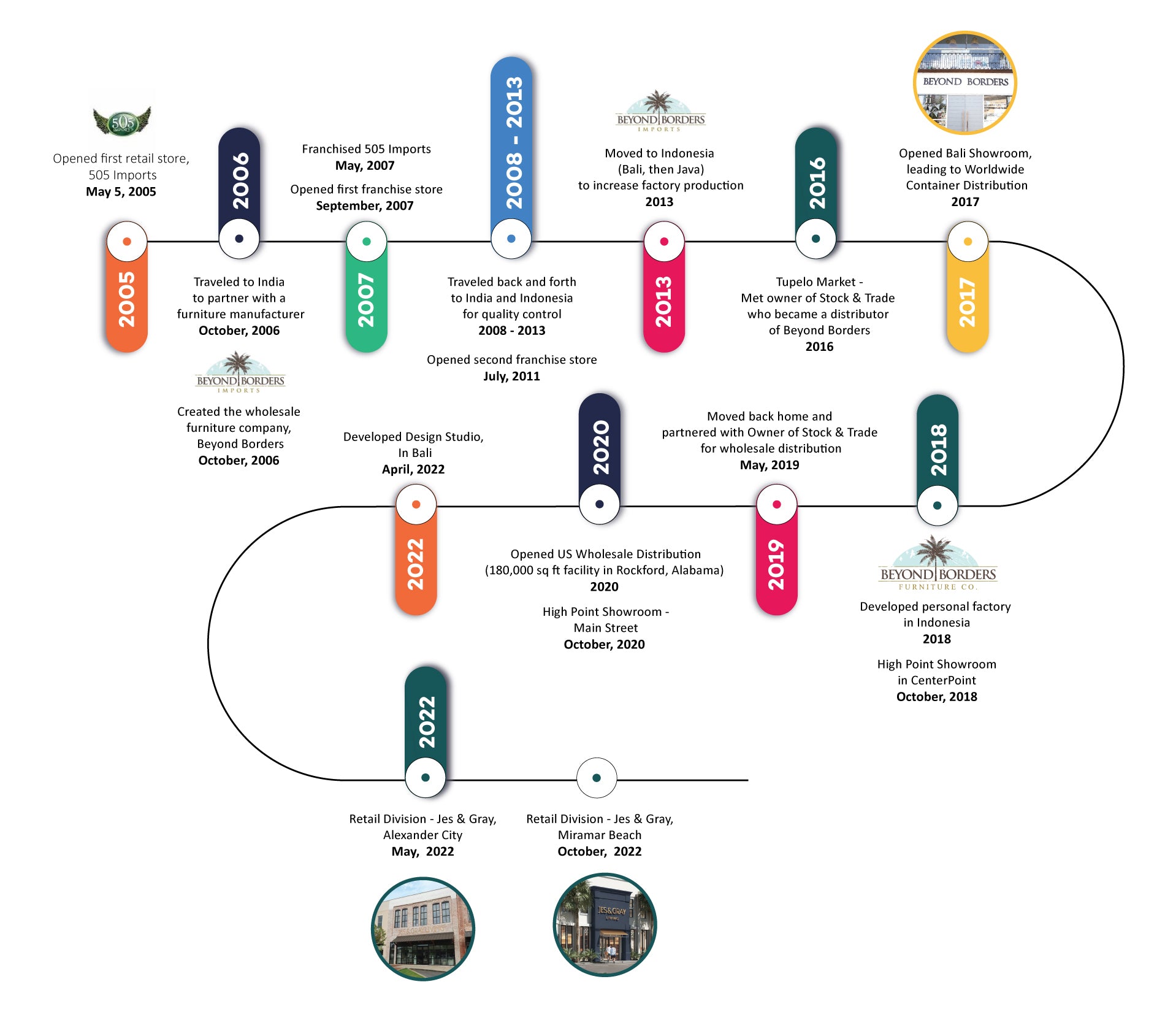 In 2006, Rebekah traveled to India and partnered with a furniture manufacturer there as well. The thrill of creating furniture that was totally unique and proprietary was a driving force for her and was not limited to one idea or location. The next few years involved traveling, sourcing, developing new designs and new business concepts, as well as marriage and starting a family. As time went on and all the businesses grew, it became clear that her strength was not just people skills from her human resource training. Additionally, Rebekah excelled in organization and the analytical side of business. Not only did she love to read operations manuals, but she was also skillful at developing and writing her own. But it was difficult to achieve consistency with the furniture production by writing "procedure manuals" and visiting Indonesia every 6 months. She and her family made a major decision to move to Indonesia, and she was "hands-on" with the manufacturing for the next six years. She had her second child in Bali, Indonesia, and life overseas was simple (though busy) and fulfilling. Traveling back and forth to the States, Rebekah began to see the vision for showing the furniture at US markets, such as Dallas, Tupelo, and High Point. In 2016 at Tupelo Market, she met a retail store owner who would first become a customer, then a distributor and later a business partner. Each encounter and experience moved the businesses forward, and by this time there were a total of six separate businesses. In 2017 she opened a showroom in Bali and soon obtained international customers which led to container distribution first to Australia and then worldwide.