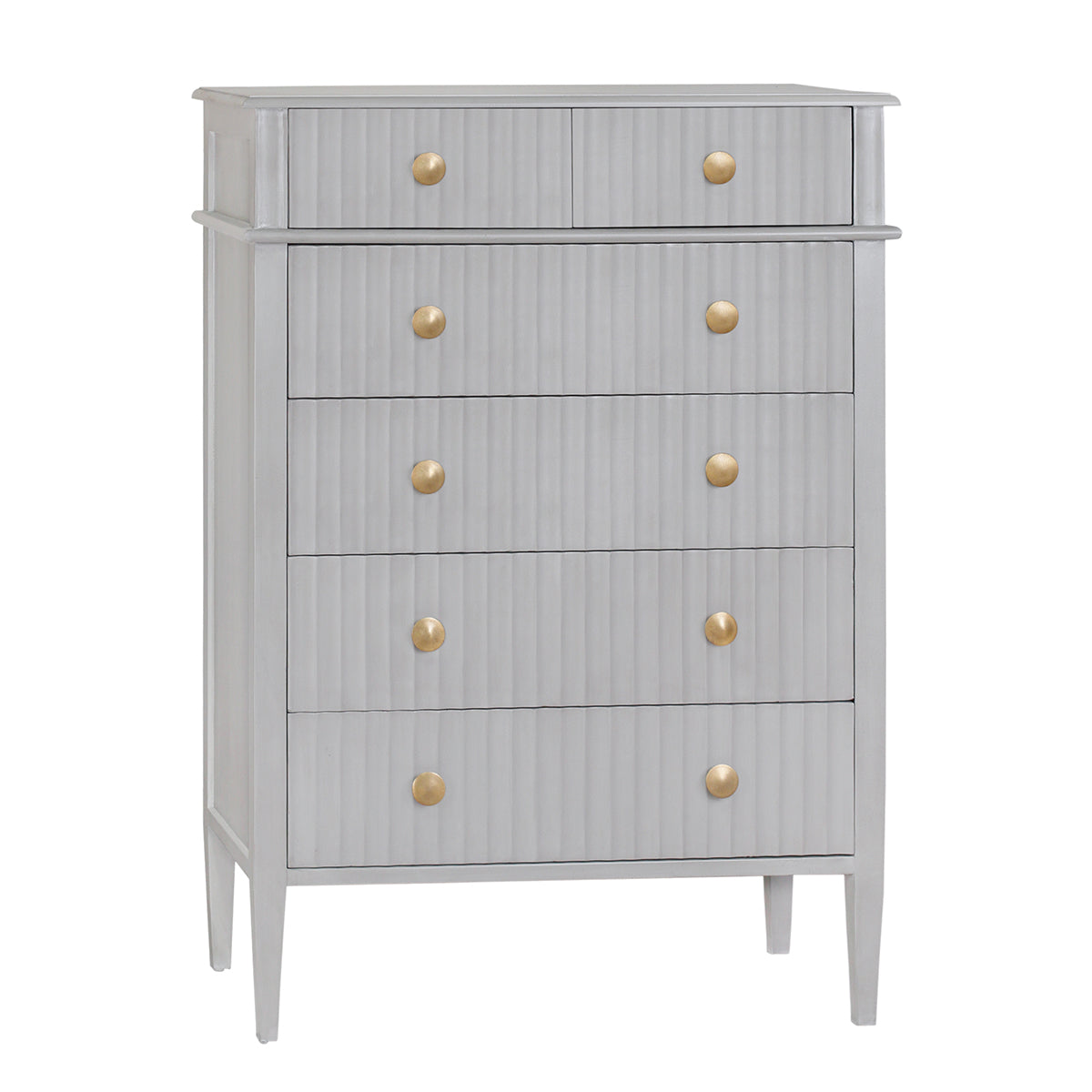 For a light and textural look, the Madison Tall Boy Chest brings unique and functional storage space to the bedroom, offering 6 accommodating drawers for everything from toys and trinkets to linens and quilts.