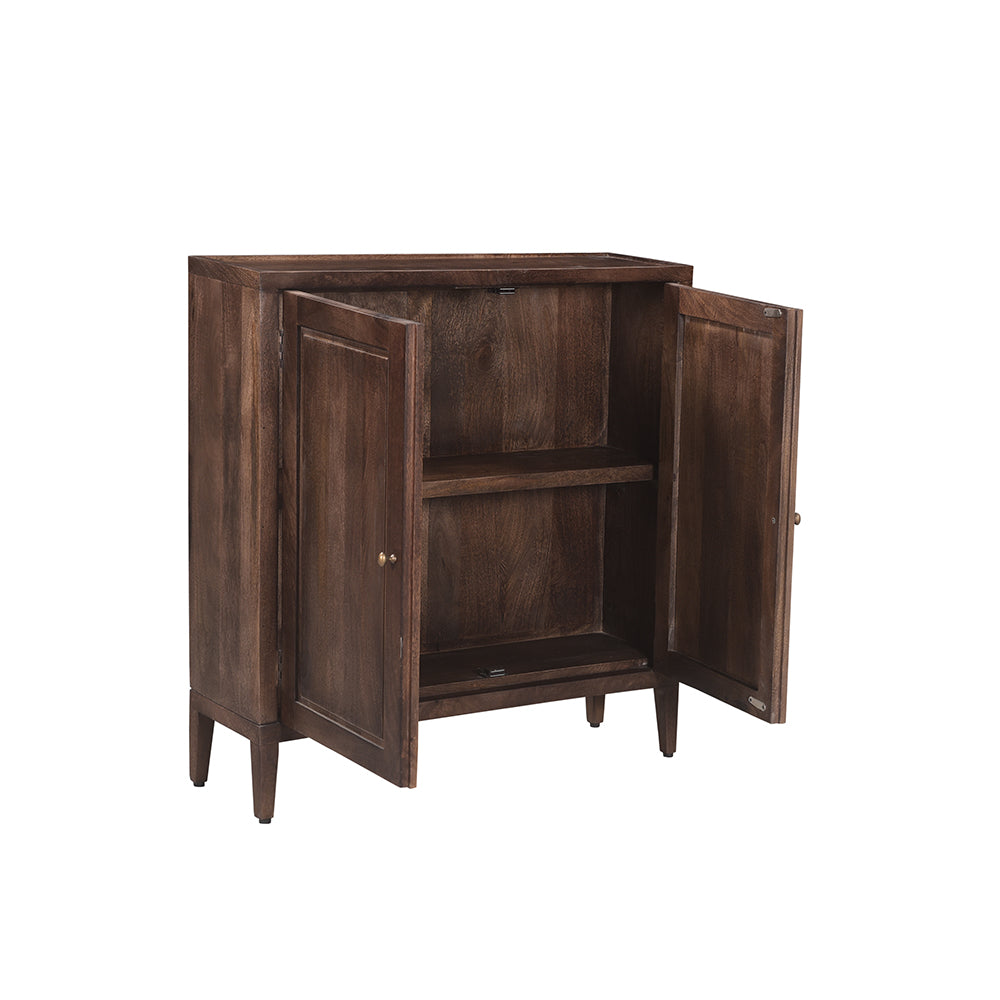 Go for a sleek, skinny interior with our Skinny Shar Sideboard. Made with mango wood, this small sideboard offers 2 doors with chic and simple knobs. Give your space a touch of minimalism and functionality!